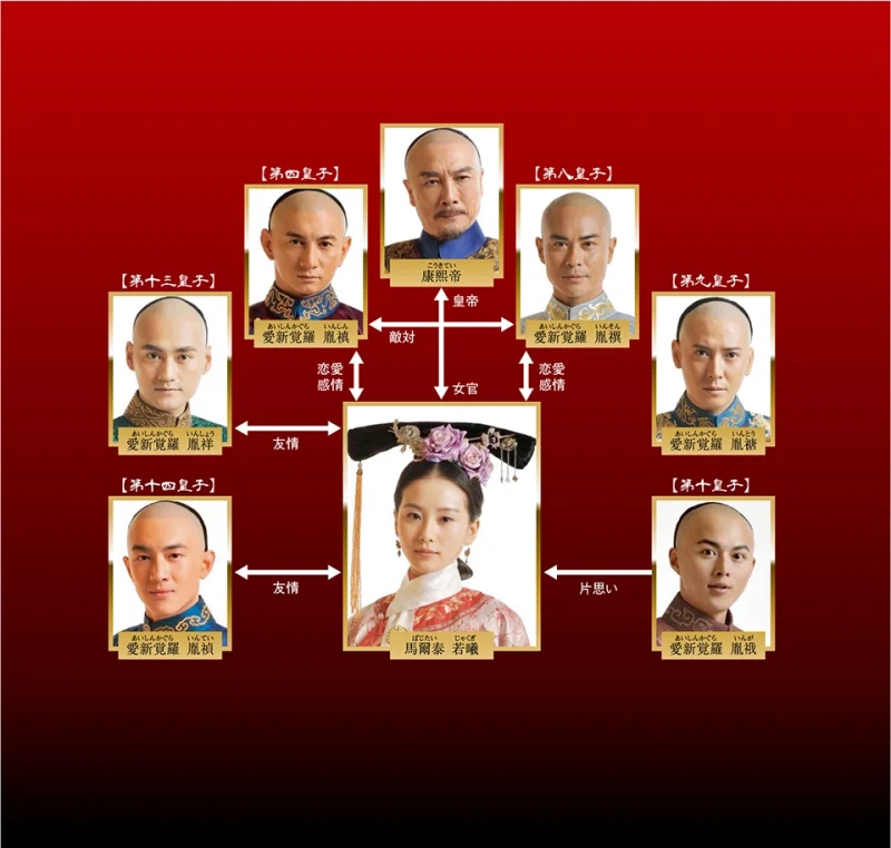 「九子奪嫡」の皇太子を含めた9人の皇子たちがとても個性的で、それぞれのキャラクターを楽しめます。今の面影を残す初々しい姿を目に焼き付けて下さいね。